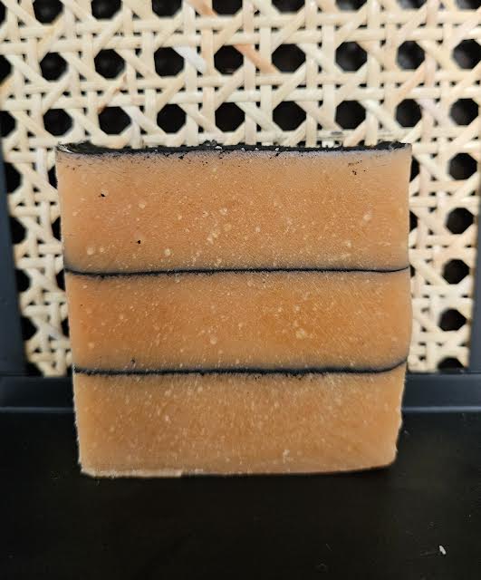 Ingredients: caster oil, coconut oil, grapeseed oil, shea butter, sunflower oil, olive oil, titanium dioxide, goats milk, activated charcoal, pumpkin powder, fragrance oil