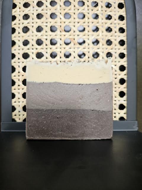 Ingredients: caster oil, coconut oil, grapeseed oil, shea butter, sunflower oil, olive oil, titanium dioxide, Turkish coffee, rhassoul clay, coco powder, goat milk, fragrance oil
